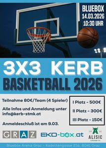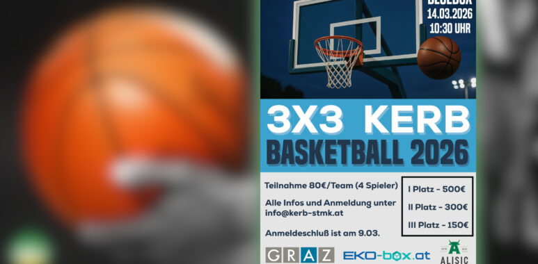 Nach dem erfolgreichen Auftakt geht das 3×3 KERB Basketball Turnier am 14. März in die zweite Runde. Das Premieren-Turnier wurde von Spieler:innen, Zuschauer:innen und Partnern mit durchwegs positivem Feedback aufgenommen – umso mehr freuen wir uns, nun das zweite internationale 3×3 KERB Turnier ankündigen zu dürfen. Auch 2026 steht das Event ganz im Zeichen von hochwertigem 3×3-Basketball, Fair Play, spannender Unterhaltung und dem Zusammenhalt der Basketball-Community. Neben dem sportlichen Wettbewerb soll das Turnier vor allem ein Treffpunkt für Basketballbegeisterte sein und den Austausch innerhalb der Szene fördern. Mit Events wie diesem möchten wir einen aktiven Beitrag leisten, um Basketball – insbesondere die 3×3-Variante – in der Steiermark weiter zu stärken und populärer zu machen. Wir laden Teams, Fans und Interessierte herzlich ein, am 14. März Teil dieses besonderen Basketball-Tages zu werden.